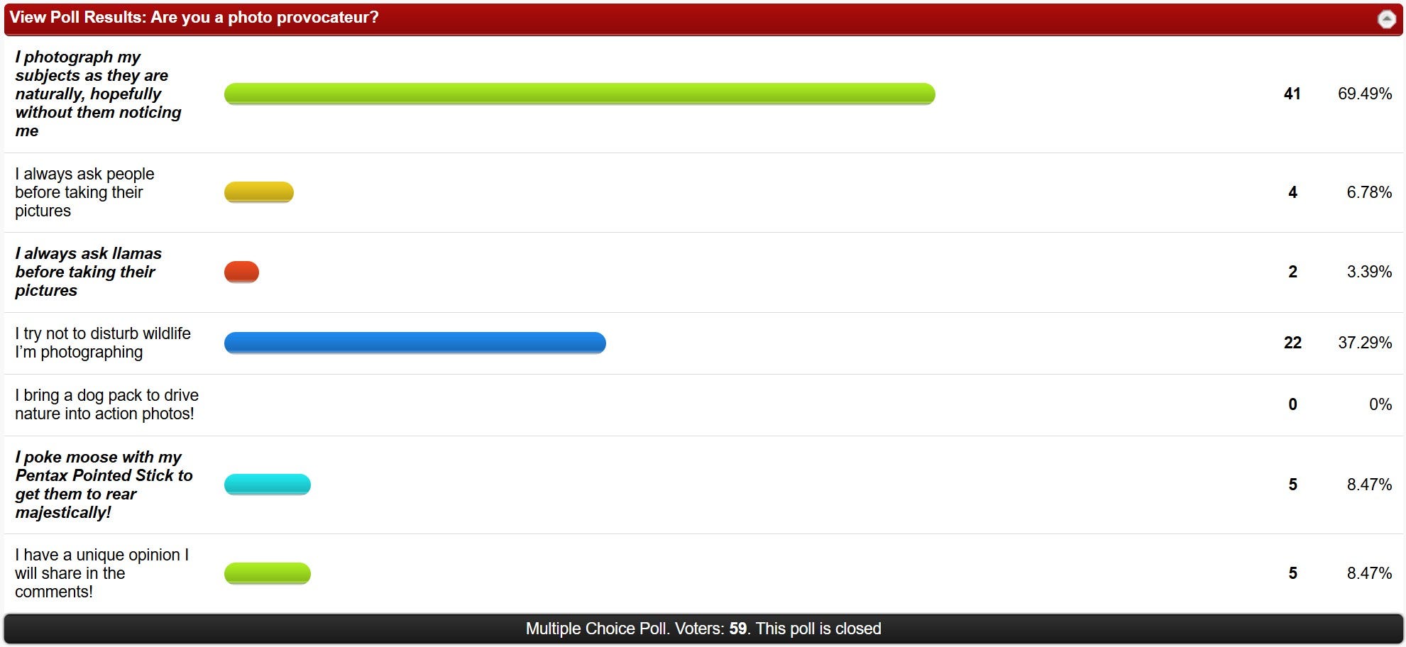 Loyal Site Supporter TwoUptons on Are you a photo provocateur? The Best of Pentax Forums April 2 Poll: One poll aspect I missed... the poking moose with a stick...