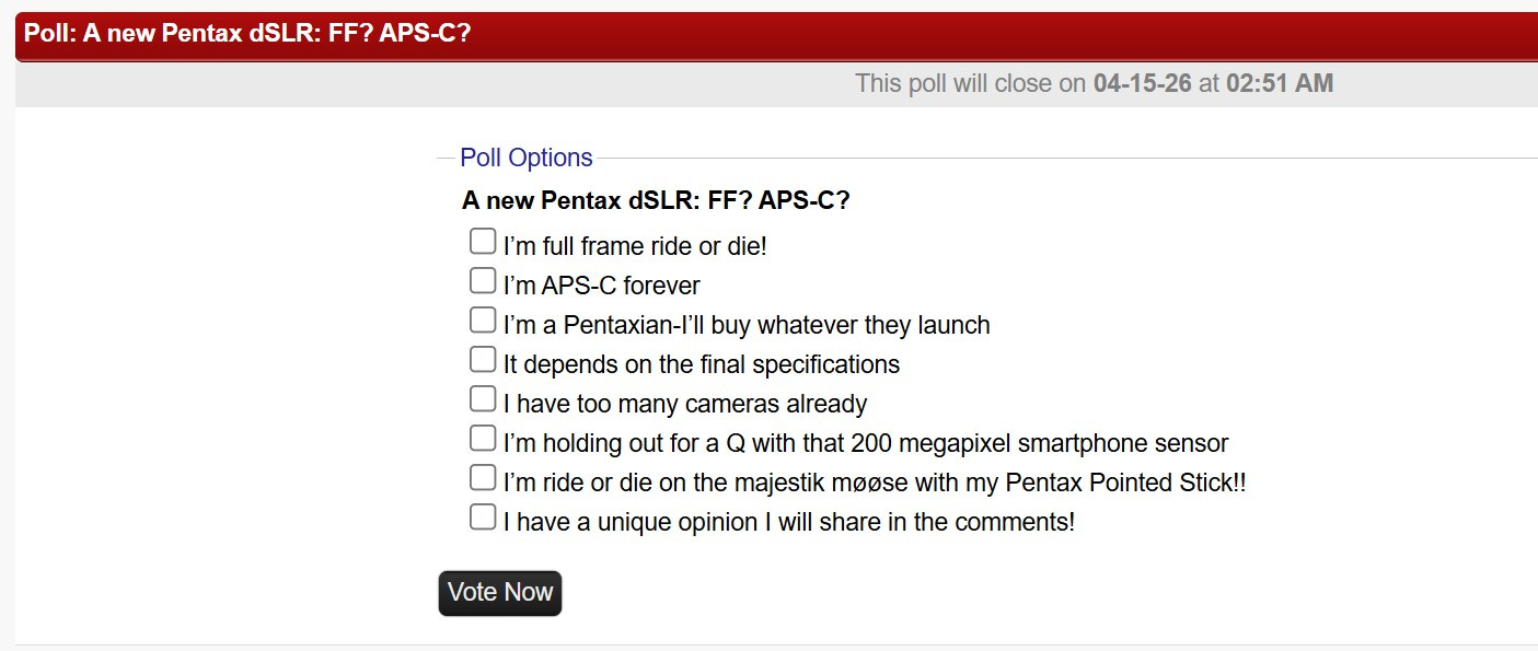 The Best of Pentax Forums April 9 Poll