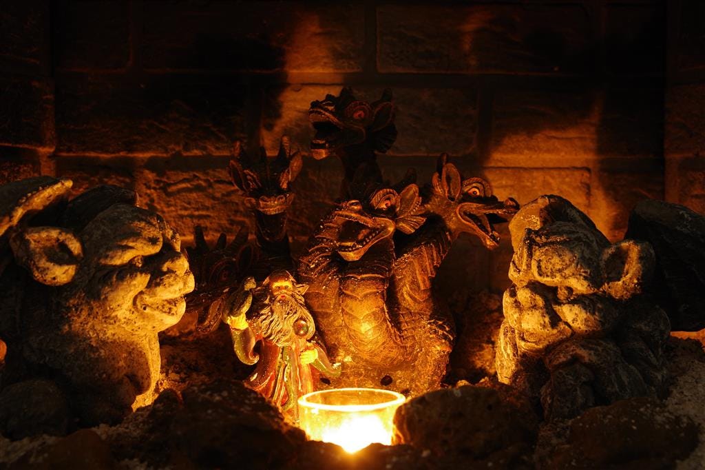 And here’s the entry from Loyal Site Supporter PurpleMyth: This was my first thought. Set up is in the fireplace. River rocks partially hide the glass candle. 2 more are in the back corners for some back glow on the bricks. Just having fun. Another first for me, I flipped the legs on my tripod over and had the camera hanging upside down. K70, and the sigma 17-70,