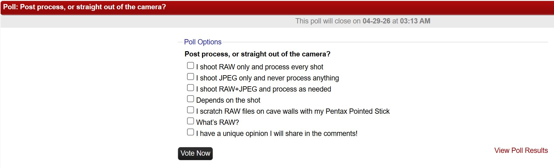 How about you? Do you post-process every image? Do you use photos straight out of the camera? Vote in this week’s poll, and let us know how you do that voodoo you do so well!
