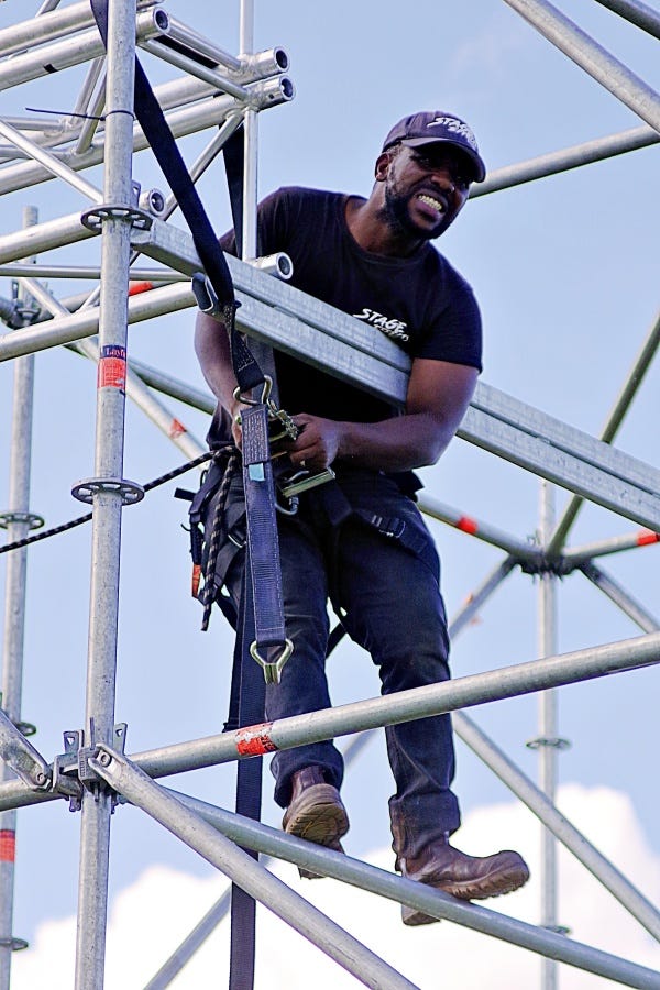 And here’s the entry from Site Supporter noelcmn: Got this today- one of the team of guys dismantling the temporary stage that was set up last week, for a Concert in the park at Johannesburg Botanical Gardens. Quite the exercise this, but spoke to a guy that was in charge and he said they make a lot of money out this exercise, so it is worth it for them.