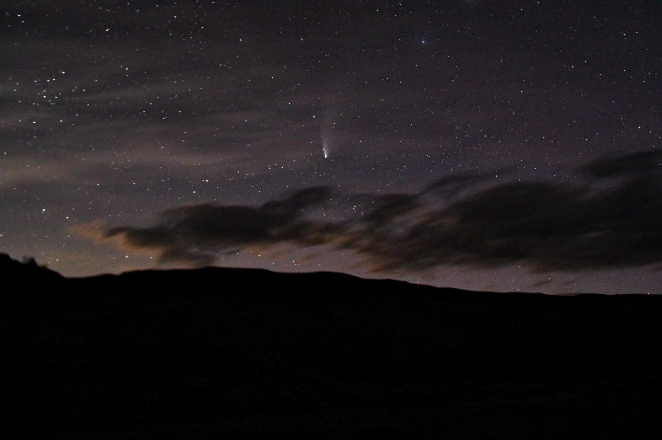 A few years ago, back in 2020, I was camping near the top of Hart Mountain in central Oregon, which was a good spot from which to view starry skies (thanks to the total absence of urban or man-made illumination) -- but it was also one of the better spots in the state from which to view the passage of the comet Neowise, which was viewable for several days (or rather nights). I put my KP on a tripod and was lucky enough to ‘capture’ this view of the comet during this 90-second exposure - yet another passage of time which is visible in this photograph.